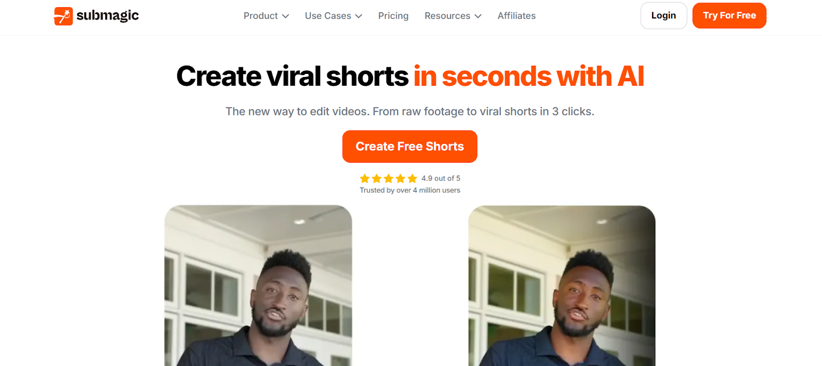 Submagic applies viral editing techniques to hook generation with auto zoom features that create dynamic openings matching social media aesthetics. The web based platform generates scroll stopping hooks complete with captions and effects optimized for engagement.