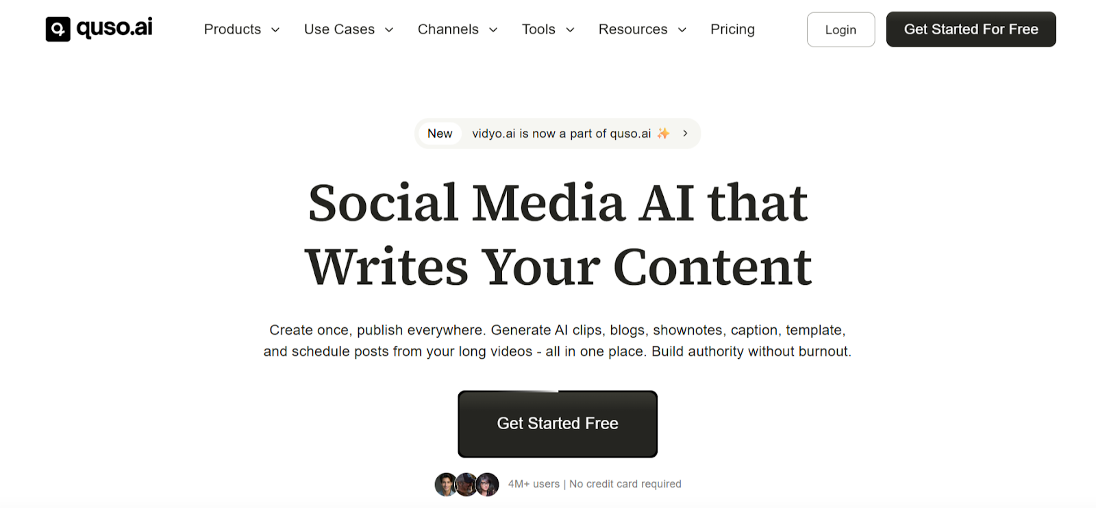 Quso combines hook generation with comprehensive content repurposing. The web based platform extracts attention grabbing openings from long videos while generating captions and effects that enhance hook impact automatically.