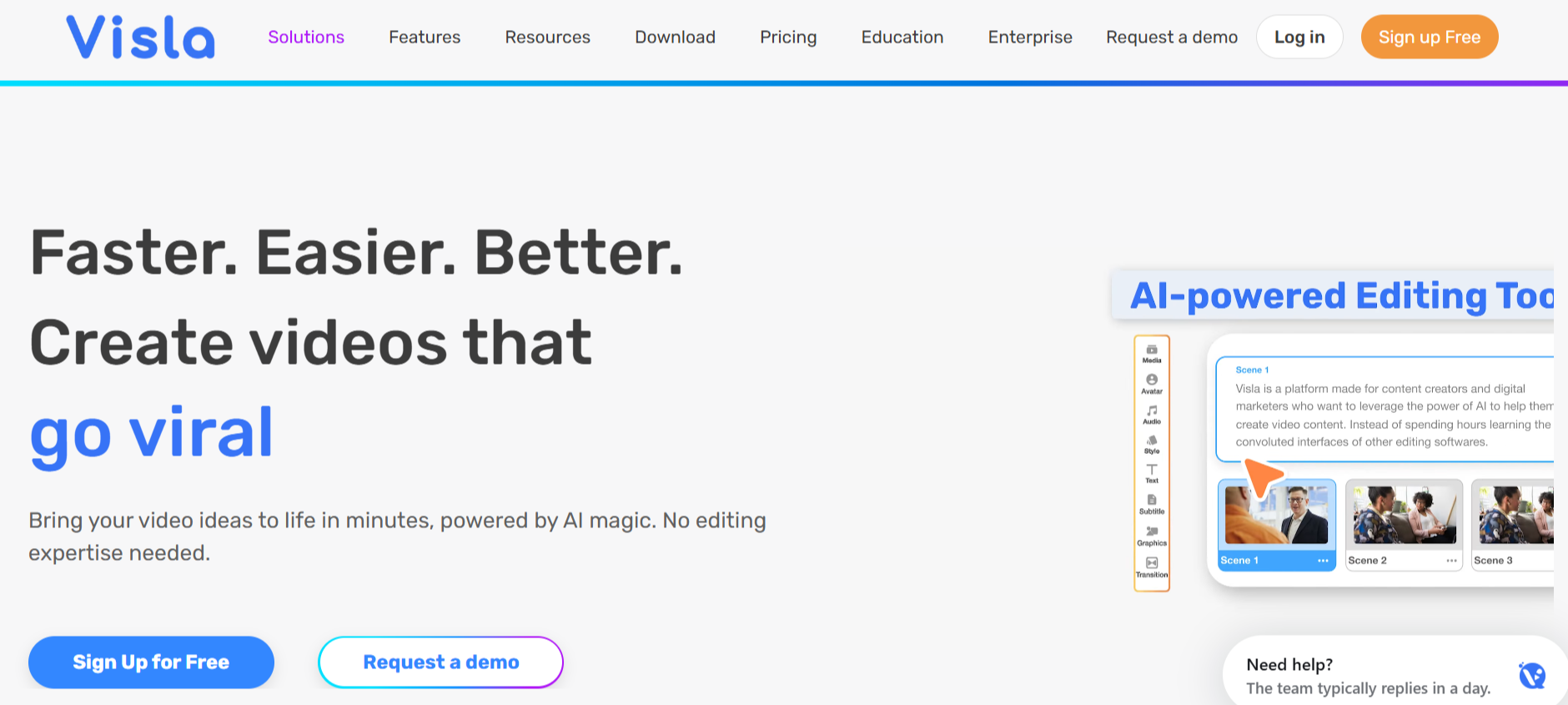 Visla focuses on comprehensive team video workflows through Teamspaces acting as digital hubs for collaborative projects. The web based platform enables multiple team members creating, editing, reviewing, and approving content within unified environments designed specifically for business video production.