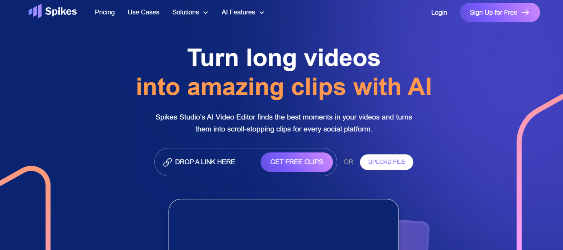 Spikes Studio brings enterprise highlight detection trained on hundreds of thousands of broadcasts. The web based platform instantly identifies segments that grab attention through advanced pattern recognition supporting 99 plus languages.