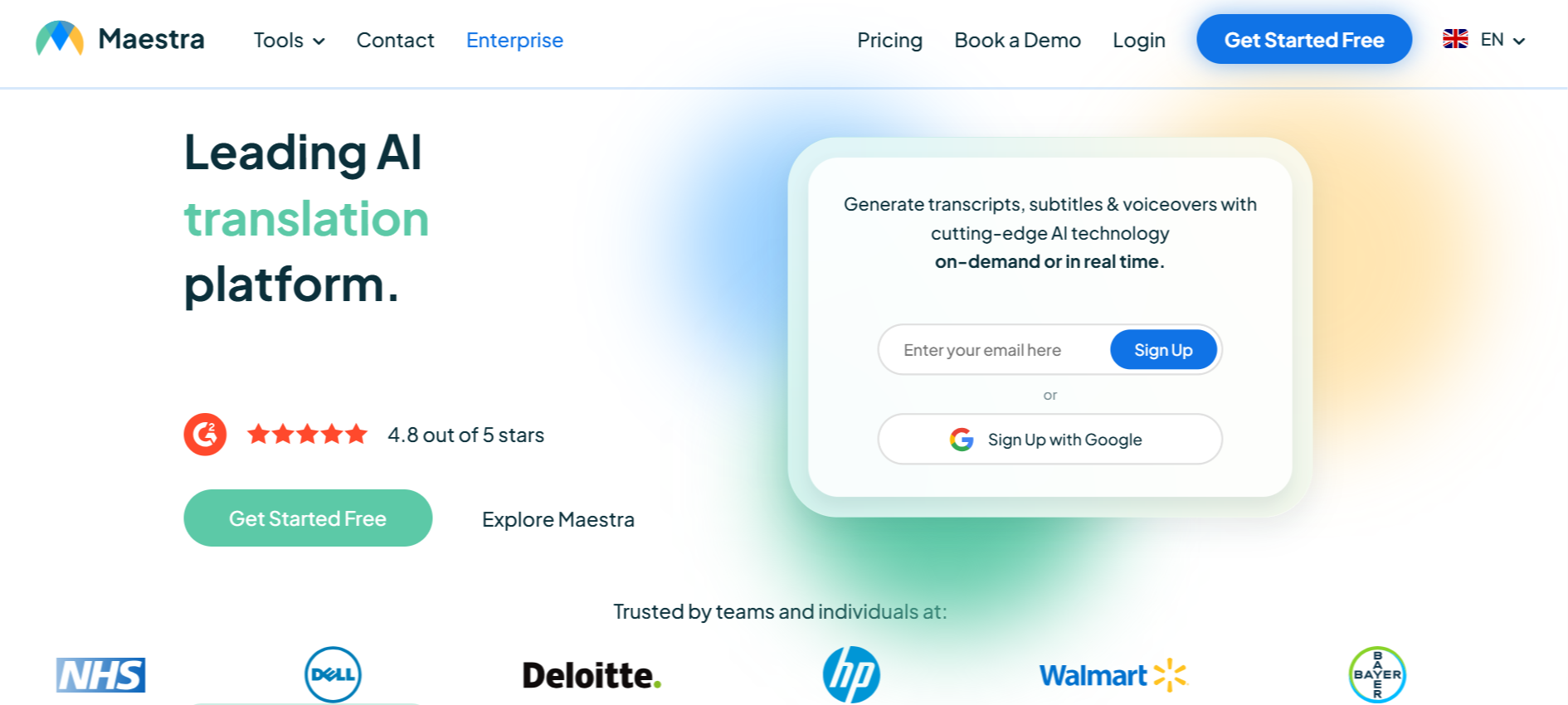 Maestra specializes in automatic subtitle generation supporting 125 plus languages through advanced AI transcription technology. The web based platform achieves 95 plus percent accuracy while providing confidence meters showing where potential errors occur, enabling quick correction focus without reviewing entire transcripts.