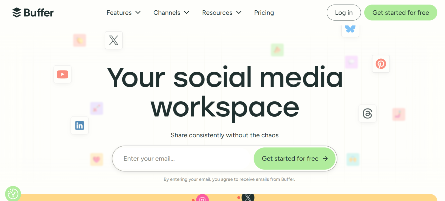 Buffer provides accessible web based scheduling with clean interfaces that welcome beginners. The platform supports major social networks including Instagram, TikTok, Facebook, LinkedIn, YouTube Shorts, and Pinterest from unified dashboard that simplifies multi platform management.