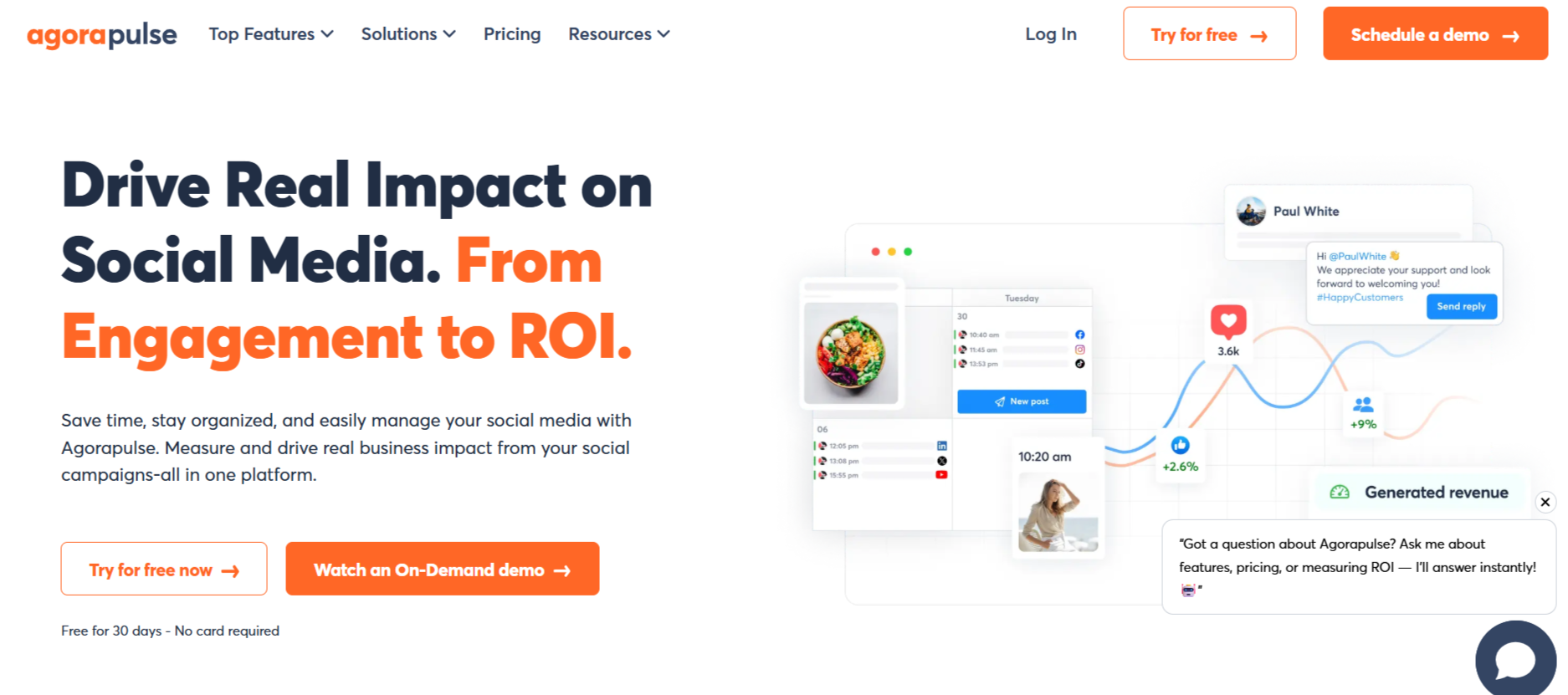 Unified Smart Inbox consolidates messages from all platforms, enabling engagement management alongside scheduling. Advanced analytics connect social activity to business outcomes, demonstrating clear ROI from automated scheduling strategies.